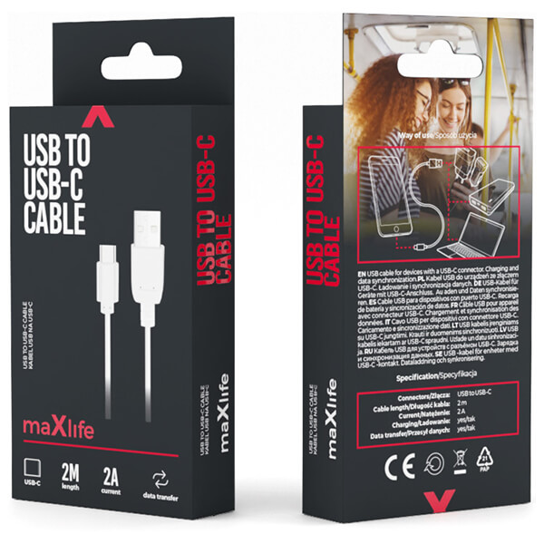 > > > MAXLIFE CABLE USB - USB-C 2,0 M 2A WHITE