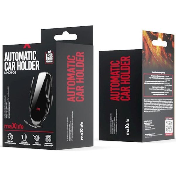 MAXLIFE CAR HOLDER FOR AIR VENT MXCH-08 AUTOMATIC WITH WIRELESS CHARGING BLACK 15W (TEL.234846)