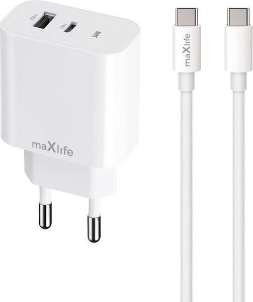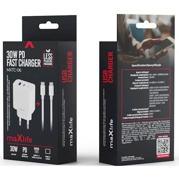 > > > MAXLIFE MXTC-06-30AC PD QC CHARGER 1X USB-C 1X USB 30W WHITE + USB-C - USB-C CABLE 60W
