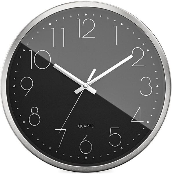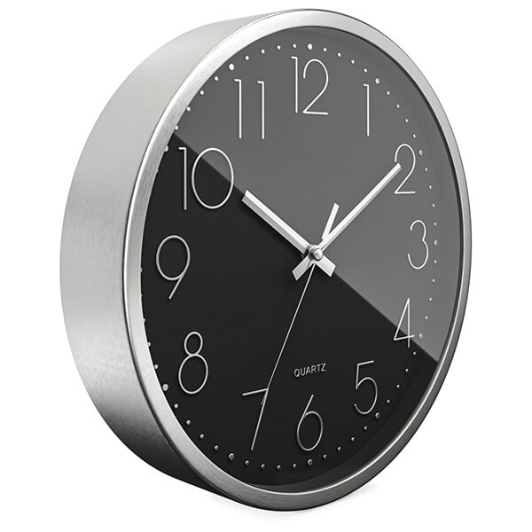 Ρολόι τοίχου Mebus quartz. Χαρακτηριστικά: - Υψηλής ποιότητας κίνηση χαλαζία: Ένα μικρό κρύσταλλο εξασφαλίζει ομαλή λειτουργία. Έτσι, εμφανίζεται αξιόπιστα η σωστή ώρα και αποφεύγονται οι αποκλίσεις. Μπορείτε να βασιστείτε σε αυτό. - Πλαίσιο αλουμινίου υψηλής ποιότητας: Κομψό, στιβαρό και ανθεκτικό. - Αθόρυβη κίνηση (κίνηση σάρωσης): Χωρίς θόρυβο τικ-τακ. - Μοντέρνος σχεδιασμός: μαύρο καντράν με ασημί 3D αριθμούς. - Ευέλικτη χρήση: ως ρολόι κουζίνας, ρολόι σαλονιού, ρολόι γραφείου ή για υπόγειο, δωμάτιο χόμπι, γκαράζ. Ο διαχρονικός σχεδιασμός ταιριάζει σχεδόν σε κάθε περιβάλλον. - Οι μπαταρίες δεν περιλαμβάνονται. Απαιτείται 1x 1,5V τύπου AA. Διαστάσεις: ? 30 x 30 x 5 cm.Χρώμα: Ασημί.Εγγύηση: 2 χρόνια. DOA 7 ημερών