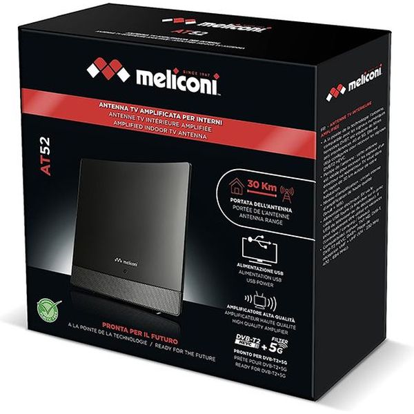 Εσωτερική κεραία τηλεόρασης με ενισχυτή 52dB, για λήψη αναλογικού και ψηφιακού τηλεοπτικού σήματος.
