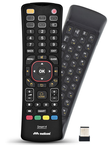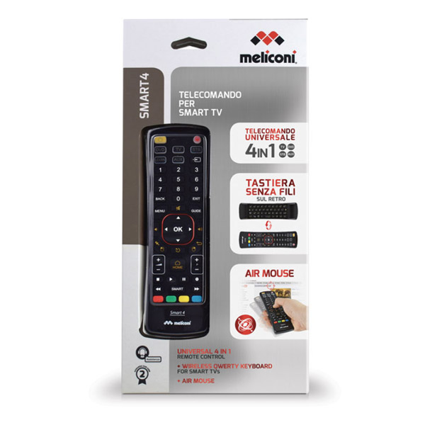 MELICONI στην κατηγορία REMOTE CONTROL 3 σε 1 Προγραμματιζόμενο τηλεχειριστήριο γενικής χρήσης με επιπλέον λειτουργίες πληκτρολογίου και air mouse. Ειδικά σχεδιασμένο για τις smart τηλεοράσεις, μπορεί να λειτουργήσει σαν ασύρματο air mouse αλλά και σαν ασύρματο πληκτρολόγιο αφού στην πίσω όψη του υπάρχει πληκτρολόγιο QWERTY. Μπορείτε να σερφάρετε στο Internet, να κάνετε chat στα social media και να χρησιμοποιείσετε τις εφαρμογές της τηλεόρασής σας πιο εύκολα από ποτέ. Αντικαθιστά και συνδυάζει 4 τηλεκοντρόλ για να μπορείτε να ελέγχετε εώς 4 από τις συσκευές που χρησιμοποιείτε όπως, τηλεοράσεις, ψηφιακούς τηλεοπτικούς δέκτες, δορυφορικούς δέκτες, IPTVs, DVDs, Blue Rays και άλλες.