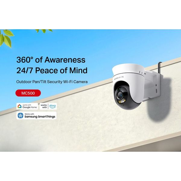 MERCUSYS στην κατηγορία IP CAMERAS Η MERCUSYS MC500 είναι μία προηγμένη εξωτερική κάμερα ασφαλείας Wi-Fi, σχεδιασμένη για ολοκληρωμένη επιτήρηση χώρων με υψηλή ευκρίνεια και έξυπνες λειτουργίες. Με ανάλυση 1080p Full HD, πανοραμική κάλυψη 360°, έγχρωμη νυχτερινή όραση και ανθεκτική κατασκευή IP65, προσφέρει αξιόπιστη προστασία όλο το 24ωρο, σε κάθε καιρική συνθήκη.