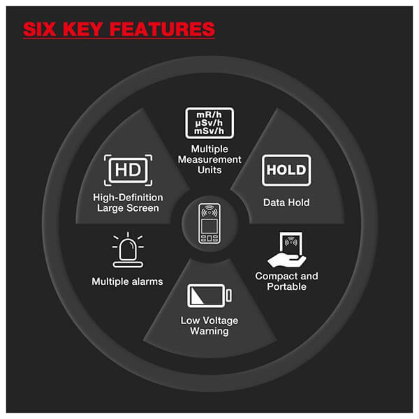 Μετρητής ραδιενέργειας Ηabotest. -Ο ανιχνευτής ακτινοβολίας HABOTEST HT629 είναι μια εξελιγμένη συσκευή ικανή να ανιχνεύει ακτίνες X, β και y, παρέχοντας μια ολοκληρωμένη λύση ανίχνευσης ακτινοβολίας κατάλληλη για ένα ευρύ φάσμα εφαρμογών. -Ιδανικό για χρήση σε βιομηχανίες, ιατρικές εφαρμογές και δοκιμές τροφίμων για τη διασφάλιση της ασφάλειας από επιβλαβείς ακτινοβολίες. -Η συσκευή είναι εξοπλισμένη με Αντιστάθμιση Ενέργειας GM που εγγυάται ακριβή ανίχνευση ακτινοβολίας σε ένα ουσιαστικά μεγάλο εύρος. -Διαθέτει προτροπές συναγερμού και ενδείξεις χαμηλής μπαταρίας, βοηθώντας στη διατήρηση της βέλτιστης λειτουργίας, διασφαλίζοντας αξιόπιστες και ακριβείς μετρήσεις ανά πάσα στιγμή. -Συμπαγής και φορητός, ο ανιχνευτής ακτινοβολίας HT629 προσφέρει εύκολη μεταφορά και αποθήκευση, καθιστώντας τον ένα απίστευτα φιλικό προς το χρήστη εργαλείο για επαγγελματίες που εργάζονται σε διαφορετικές συνθήκες. Τύπος ακτίνων ανίχνευσης: ακτίνες β, Y, Χ.Ανιχνευτής: GM Compensation Energy (Μετρητής Geiger).Ρυθμός ισοδύναμης δόσης: 0,00-50000uSvh (50mSv/h).Εύρος ενέργειας: 48keV-1,5MeV ? ± 30% (για 137Cs -).Ευαισθησία: 80 CPM/uSv.Ακρίβεια σε πραγματικό χρόνο: ? ± 15% (κάτω από 100uSv/h), ? ± 20% (πάνω από 100uSv/h, κάτω από 1000uSv/h) ? ± 25% (πάνω από 1000uSv/h).Εναλλαγή μονάδας: μSv/h, mR/h, cps, cpm.Αλλα χαρακτηριστικά: Αυτόματη απενεργοποίηση, Ειδοποιήσεις συναγερμού, Ένδειξη χαμηλής μπαταρίας, Διατήρηση δεδομένων.Μπαταρία: 3x1,5V AAA (δεν περιλαμβάνεται).Μέγεθος: 142 x 58 x 28 mm.Βάρος: 167 gr.Χρώμα: Μαύρο.Eγγύηση: 2 χρόνια.Εγγύηση: 2 χρόνια.