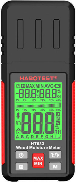Ο μετρητής Habotest HT633 σάς επιτρέπει να μετράτε τόσο την υγρασία όσο και τη θερμοκρασία. Είναι εξοπλισμένος με 7 ρυθμίσεις, ώστε να μπορείτε να μετράτε διαφορετικά υλικά. Η οθόνη παρέχει πρόσβαση στις πιο σημαντικές πληροφορίες και ο ευαίσθητος αισθητήρας είναι υπεύθυνος για ακριβείς μετρήσεις. Επιπλέον, σας επιτρέπει να αλλάξετε τις μονάδες °C/°F και απενεργοποιείται αυτόματα μετά από μια ορισμένη περίοδο μη χρήσης για εξοικονόμηση ενέργειας. -Η συσκευή έχει 2 άκρες που παρέχουν γρήγορες και ακριβείς μετρήσεις - θα τη χρησιμοποιήσετε για υλικά όπως ξύλο, σκυρόδεμα, σοβάς και τούβλο. Μπορείτε επίσης να μετρήσετε την υγρασία και τη θερμοκρασία περιβάλλοντος=. Η οθόνη LCD παρέχει εύκολη πρόσβαση σε πληροφορίες σχεδόν σε όλες τις συνθήκες και τα χαμηλά, μεσαία ή υψηλά επίπεδα υγρασίας θα σηματοδοτούν με πράσινο, πορτοκαλί ή κόκκινο χρώμα αντίστοιχα. -Το υλικό του είναι πλαστικό ABS, που σημαίνει ότι η συσκευή είναι ανθεκτική στις πτώσεις, τη σκόνη και το νερό. = -Επιπλέον, ο εργονομικός σχεδιασμός εγγυάται άνεση στη χρήση και ένα ειδικό κάλυμμα για το άκρο μέτρησης αποτρέπει τις κοπές. -Στο σετ θα βρείτε και ένα κλειδί, που θα διευκολύνει τη συναρμολόγηση/αποσυναρμολόγηση τους. Μέτρηση υγρασίας + ακρίβεια: 0,0%-57%, ±2,0%.Θερμοκρασία περιβάλλοντος + ακρίβεια: -20°C - 60°C (-4°F-140°F), ±1.5°C.Υγρασία περιβάλλοντος + ακρίβεια: 0-100%, ±5%.Αποθήκευση δεδομένων: Ναι.Πίσω φωτισμός: Ναι.MAX/MIN: Ναι.Αυτόματη απενεργοποίηση: Ναι.Ενδειξη χαμηλής μπαταρίας: Ναι.Τροφοδοσία: Μπαταρίες 3x 1,5V AAA.Διαστάσεις: 142 x 58 mm.Εγγύηση: 2 χρόνια.