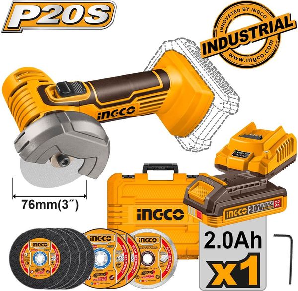 ΜΙΝΙ ΤΡΟΧΟΣ ΚΟΠΗΣ ΜΠΑΤΑΡΙΑΣ 76MM 20V LI-ION INGCO CAGLI76012E (TLS.391922)