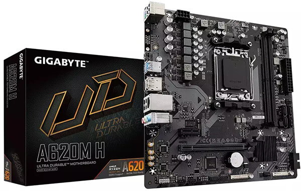 GIGABYTE στην κατηγορία ΜΗΤΡΙΚΗ ΚΑΡΤΑ Μητρική κάρτα Gigabyte A620M H για Ryzen7000 Series, socket AM5. Διαθέτει 2 υποδοχές DIMM DDR5 με μέγιστη χωρητικότητα 96 GB και μία υποδοχή PCI Express 4.0 για σύνδεση καρτών γραφικών και άλλων επεκτάσεων. Δέχεται έως 1 μονάδα αποθήκευσης SSD τύπου M.2 και 4 μονάδες αποθήκευσης με σύνδεση SATA III 6GB/s.