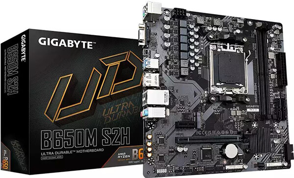 GIGABYTE στην κατηγορία ΜΗΤΡΙΚΗ ΚΑΡΤΑ Μητρική κάρτα Gigabyte B650M S2H για επεξεργαστές Ryzen7000 Series με socket AM5. Διαθέτει 2 υποδοχές DIMM DDR5 με μέγιστη χωρητικότητα 96 GB και μία υποδοχή PCIe 4.0 x16 για σύνδεση κάρτας γραφικών. Δέχεται έως 1 μονάδα αποθήκευσης SSD τύπου M.2 και 4 μονάδες αποθήκευσης με σύνδεση SATA III 6GB/s.