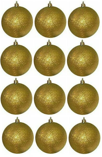 Μπάλες με γκλίτερ για την διακόσμηση του χριστουγεννιάτικου δέντρου σας. • Υλικό: Πλαστικό. • Διάμετρος: 4 cm. • Τεμάχια: 12 τμχ. • Χρώμα: Χρυσό. • Εγγύηση: 2 χρόνια.