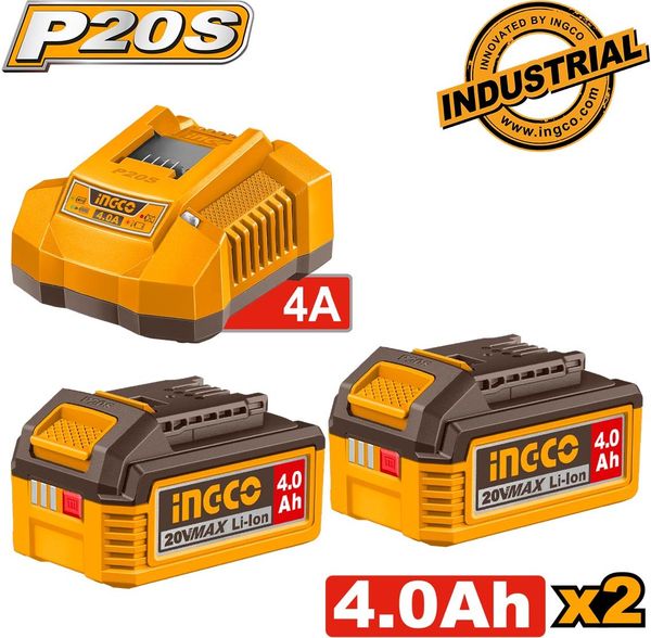 ΜΠΑΤΑΡΙΑ 2 ΤΕΜ. 4.0AH + ΦΟΡΤΙΣΤΗΣ 4Α 1 ΤΕΜ. ΣΕΤ INGCO FBCPK2013E