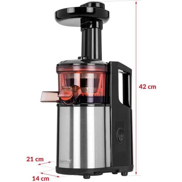 Ο αποχυμωτής αργής σύνθλιψης MPM MSO-12M 150W έχει σχεδιαστεί για ήπια και αποδοτική εκχύλιση χυμού από φρούτα και λαχανικά. Με ταχύτητα 60 στροφών ανά λεπτό (rpm), λειτουργεί αργά και με ακρίβεια, εξασφαλίζοντας λεπτή εκχύλιση (fine juicing) και έντονο γευστικό αποτέλεσμα. Ο εσωτερικός κοχλίας συνθλίβει και πιέζει τον πολτό σταδιακά, επιτρέποντας την επεξεργασία τόσο κλασικών υλικών όσο και πιο απαιτητικών, όπως μαϊντανός, σπανάκι, μαρούλι, σόγια, σμέουρα, φραγκοστάφυλα και μάνγκο. Σε περίπτωση μπλοκαρίσματος από πιο ινώδη υλικά, η λειτουργία reverse αντιστρέφει την περιστροφή για άμεση αποκατάσταση της ροής. Διαθέτει φίλτρο ακριβείας από ανοξείδωτο ατσάλι, το οποίο συγκρατεί ίνες, σπόρους και φλούδες, επιτρέποντας τη ροή καθαρού χυμού. Το στόμιο εξαγωγής χυμού διαθέτει σύστημα anti-drip για αποφυγή σταξίματος. Ο αποχυμωτής περιλαμβάνει δοχείο χυμού 1 λίτρου και δοχείο υπολειμμάτων 800 ml, καθώς και βουρτσάκι καθαρισμού. Η συναρμολόγηση και αποσυναρμολόγηση είναι απλή και γρήγορη, ενώ τα αποσπώμενα μέρη καθαρίζονται εύκολα και είναι κατάλληλα για πλυντήριο πιάτων.