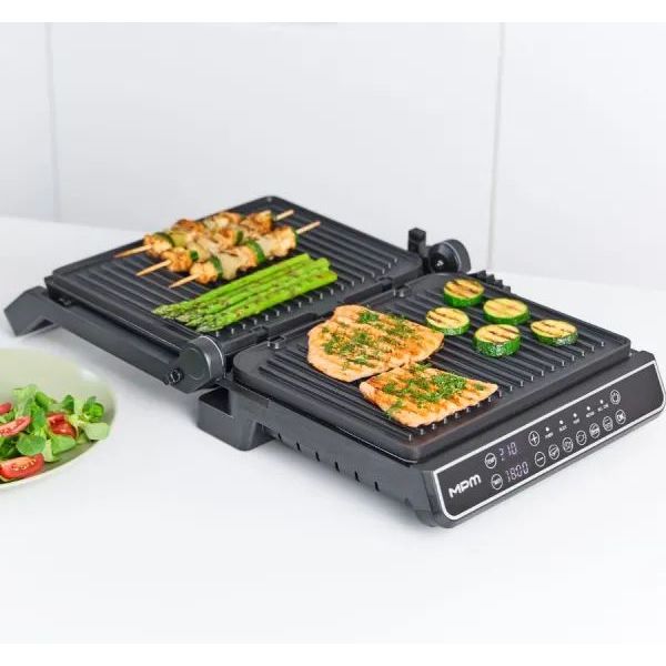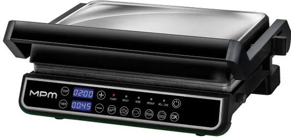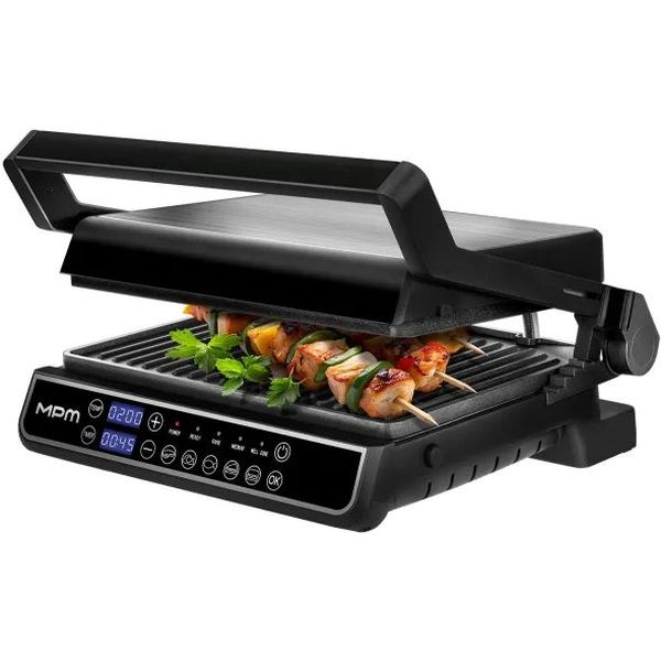 Η γκριλιέρα MPM MGR-14M 2400W προσφέρει ευελιξία και επαγγελματικό αποτέλεσμα στο ψήσιμο, είτε ανοιχτή είτε κλειστή. Με δύο τρόπους λειτουργίας - διπλό ψήσιμο ή πλήρως ανοιχτή επιφάνεια 180° - σας δίνει τη δυνατότητα να ψήνετε ταυτόχρονα περισσότερα φαγητά. Οι αφαιρούμενες αντικολλητικές πλάκες και ο αποσπώμενος δίσκος συλλογής υγρών καθαρίζονται εύκολα στο πλυντήριο πιάτων, ενώ το ανοξείδωτο σώμα εξασφαλίζει ανθεκτικότητα και κομψότητα. Διαθέτει ψηφιακή οθόνη LED με 5 αυτόματα προγράμματα και χειροκίνητη λειτουργία, ρυθμιζόμενο ύψος επάνω πλάκας και ηχητική ειδοποίηση για κάθε στάδιο λειτουργίας.