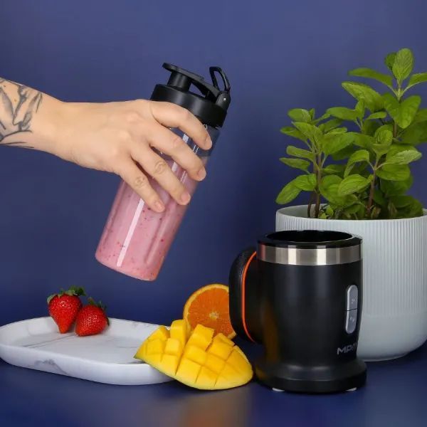 Περιλαμβάνει δοχείο 600ml με αεροστεγές καπάκι που διαθέτει στόμιο για κατανάλωση και λαβή μεταφοράς, ώστε να μπορείτε να παίρνετε τα ροφήματά σας παντού. Οι αντιολισθητικοί τάπες στη βάση εξασφαλίζουν σταθερότητα κατά τη λειτουργία.