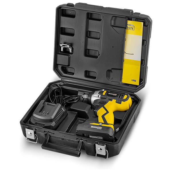 Μπουλονόκλειδο από την Bormann, με μπαταρία λιθίου 20V χωρητικότητας 2Ah. -Αλουμινένιο περίβλημα κεφαλής που καλύπτεται από καουτσούκ. -Led εργασίας. -Ηλεκτρικό φρένο. -BMC βαλίτσα. Χαρακτηριστικά Τάση: 20V.Στροφές: 0-2400 rpm.Κρούσεις: 0-3000 bpm.Μέγιστη Ροπή: 350 Nm.Τσοκ: 10 mm.Υποδοχή: 12.7 mm (1/2'').Περιλαμβάνει: 1x 2.0Ah μπαταρία, 2.0A φορτιστή.Επιπλέον χαρακτηριστικά: Led φως, Αλουμινένιο περίβλημα κεφαλής που καλύπτεται από καουτσούκ, Ηλεκτρικό φρένο, Θήκη Μεταφοράς.Διαστάσεις συσκευασίας (ΜxΠxΥ): 31 x 27 x 10 cm.Βάρος συσκευασίας: 2.58 kg.Εγγύηση: 2 χρόνια.