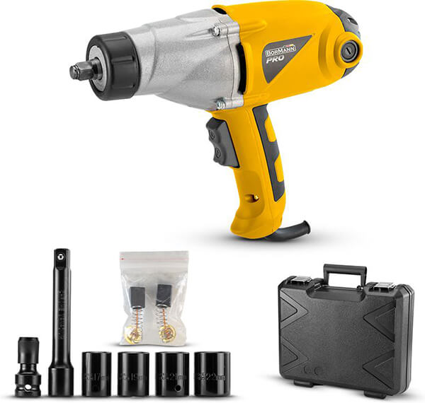 Μπουλονόκλειδο Ηλεκτρικό 1010W της BORMANN PRO. -Ισχυρό μπουλονόκλειδο ρεύματος με μεγάλη ροπή για τα πιο απαιτητικά μπουλόνια. Με εργονομική λαβή για άνετη χρήση και βαλίτσα μεταφοράς για εύκολη μεταφορά. -Με κινητήρα νέας τεχνολογίας για ταχύτερη και ευκολότερη χρήση. -Λειτουργία αριστερόστροφη και δεξιόστροφη για σύσφιξη και χαλάρωση. Ισχύς: 1010 Watt.Ροπή Στρέψης: 450 Nm.Τάση: 230-240V/50Hz.Στροφές: 2200 rpm.Περιλαμβάνει: Καρυδάκια 17/19/21/22mm.Εγγύηση: 2 χρόνια.