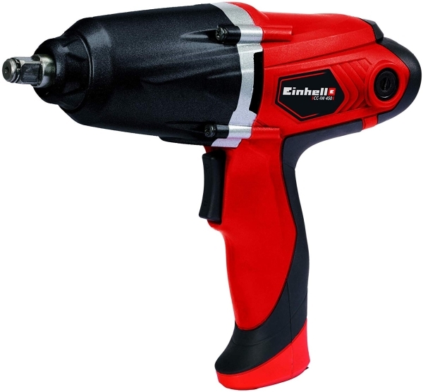 Το μπουλονόκλειδο Einhell CC-IW 450 είναι ένας πρακτικός βοηθός που είναι πάντα έτοιμος να βοηθήσει τους λάτρεις του DIY στο εργοτάξιο ή στο γκαράζ. Με την ονομαστική ισχύ 450 W, παρέχει αρκετή ισχύ για τη σφίξιμο των βιδών και τη χαλάρωση των μπουλονιών. Χαρακτηριστικά: - Μπουλονόκλειδο για την αντικατάσταση των ελαστικών. - Διακόπτης ταχυτήτων για γρήγορη αντιστροφή της κατεύθυνσης. - Μαλακή λαβή για άνετη λειτουργία και ασφαλές κράτημα. - Μηχανισμός πρόσκρουσης σε ένα ανθεκτικό περίβλημα για δύσκολα καθήκοντα. - Πλήρες με 4 μπουλόνια κλειδιού (17, 19, 21 & 22 mm). Τροφοδοσία: 230-240 V | 50 Hz.Ισχύς: 450 W.Ταχύτητα χωρίς φορτίο: 2600 min^-1.Μέγιστη ροπή: 300 Nm.Τετράγωνη υποδοχή: 0.5 ".Μήκος καλωδίου: 200 cm.Βάρος: 2.05 kg.Εγγύηση: 2 χρόνια.