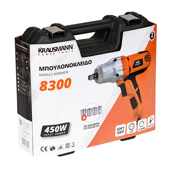 ΜΠΟΥΛΟΝΟΚΛΕΙΔΟ ΗΛΕΚΤΡΙΚΟ KRAUSMANN 1/2 450W 330ΝΜ + ΚΑΡΥΔΑΚΙΑ 8300 (TLS.040303)