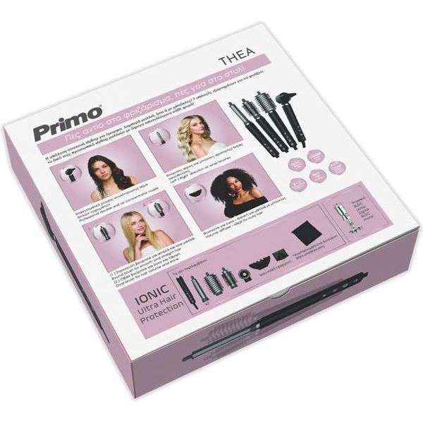 PRIMO στην κατηγορία ΙΣΙΩΤΙΚΑ Το Multi Styler Primo THEA PRHS-40535 συνδυάζει ισχυρό ψηφιακό BLDC μοτέρ, πολλαπλές λειτουργίες και πλήρες σετ εξαρτημάτων styling για επαγγελματικά αποτελέσματα στο σπίτι. Ιδανικό για δημιουργία όγκου, μπούκλες ή απλή στεγνή εμφάνιση με απόλυτο έλεγχο.