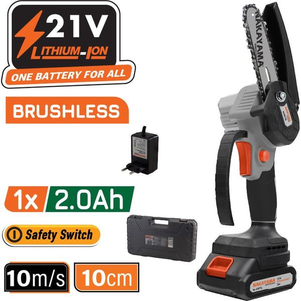 NAKAYAMA στην κατηγορία ΑΛΥΣΟΠΡΙΟΝΑ Το NAKAYAMA EC1040 είναι ένα ελαφρύ και ισχυρό κλαδευτικό αλυσοπρίονο μπαταρίας 21V, ιδανικό για επαγγελματική και οικιακή χρήση. Με μοτέρ τεχνολογίας Brushless, προσφέρει υψηλή απόδοση, μεγαλύτερη διάρκεια ζωής και μειωμένη συντήρηση, καθιστώντας το εργαλείο αξιόπιστο και αποδοτικό για κάθε εργασία κοπής ή κλαδέματος.