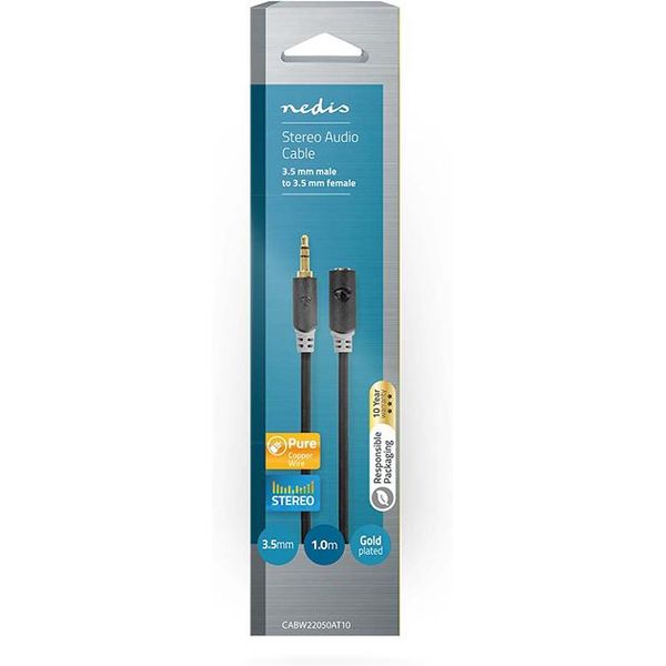 NEDIS CABW22050AT10 STEREO AUDIO CABLE 3.5 MM MALE - 3.5 MM FEMALE 1.0 M ANTHRACITE (PER.266581)