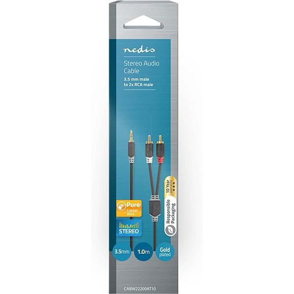 > > > NEDIS CABW22200AT10 STEREO AUDIO CABLE 3.5 MM MALE - 2X RCA MALE 1.0 M ANTHRACITE