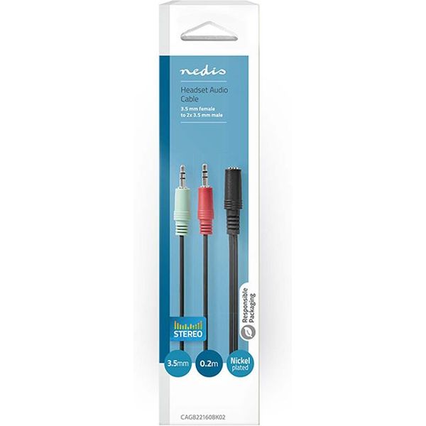 > > > NEDIS CAGB22160BK02 STEREO AUDIO CABLE 3.5MM FEMALE - 2X 3.5MM MALE 0.12M BLACK