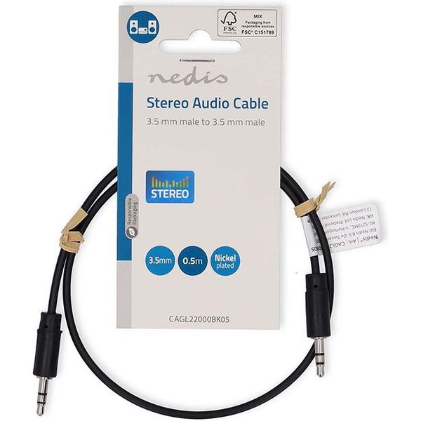 > > > NEDIS CAGL22000BK05 STEREO AUDIO CABLE 3.5MM MALE - 3.5 MM MALE 0.50M BLACK