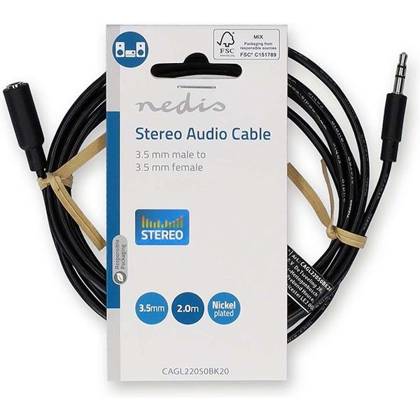 > > > NEDIS CAGL22050BK20 STEREO AUDIO CABLE 3.5MM MALE - 3.5MM FEMALE 2.00M BLACK