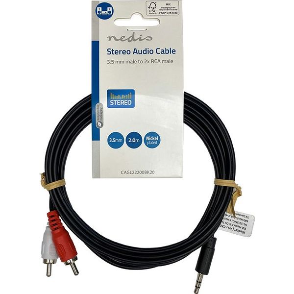 > > > NEDIS CAGL22200BK20 STEREO AUDIO CABLE 3.5MM MALE - 2X RCA MALE 2.00M BLACK