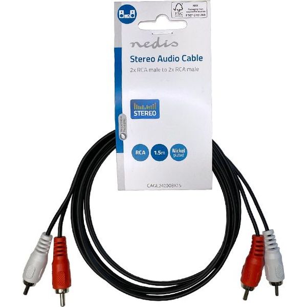 > > > NEDIS CAGL24200BK15 STEREO AUDIO CABLE 2X RCA MALE - 2X RCA MALE 1.50M BLACK