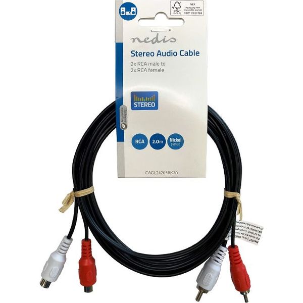 > > > NEDIS CAGL24205BK20 STEREO AUDIO CABLE 2X RCA MALE - 2X RCA FEMALE 2.00M BLACK