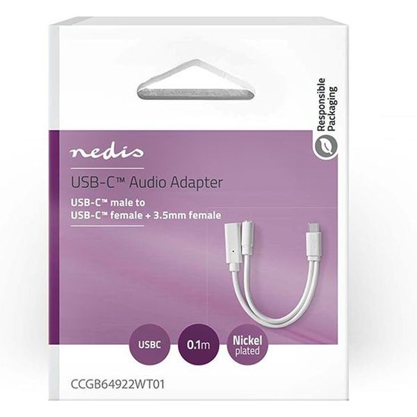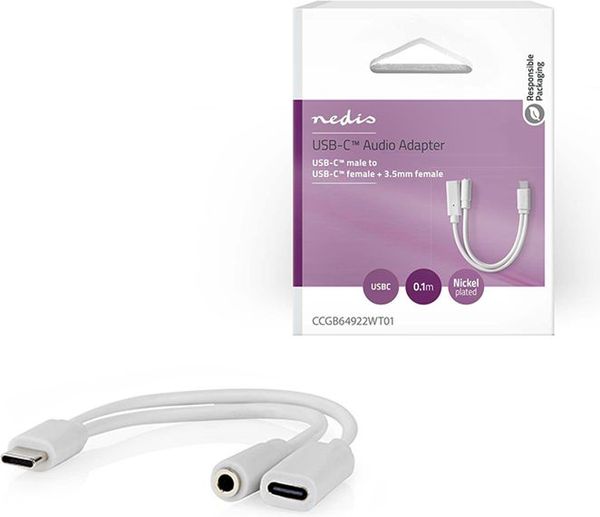 > > > NEDIS CCGB64922WT01 USB 2.0 TYPE-C ADAPTER USB-C MALE - USB-C FEMALE / 3.5MM FEMALE 0.10M WHITE