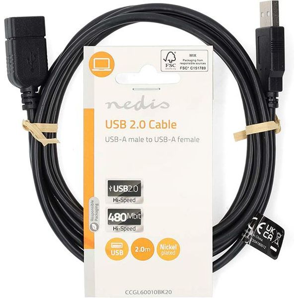 > > > NEDIS CCGL60010BK20 USB 2.0 CABLE USB-A MALE - USB-A FEMALE 2.00M BLACK