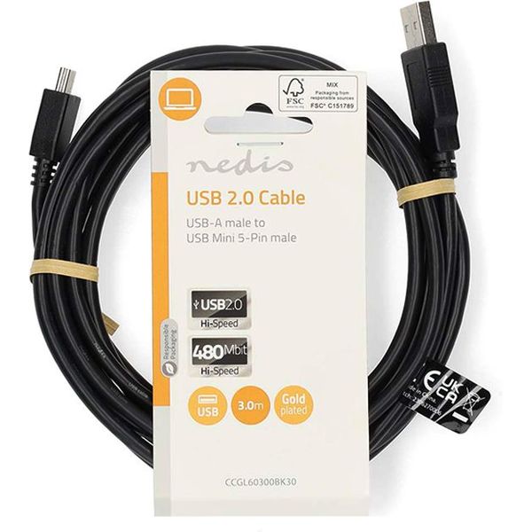 > > > NEDIS CCGL60300BK30 USB 2.0 CABLE USB-A MALE - USB MINI-B 5 PIN MALE 3.00M BLACK