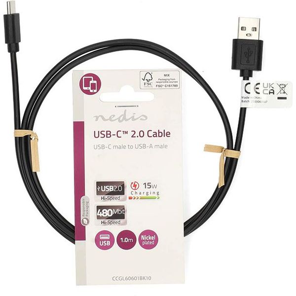> > > NEDIS CCGL60601BK10 USB 2.0 CABLE USB-A MALE - USB-C MALE 2.5W 1.00M BLACK