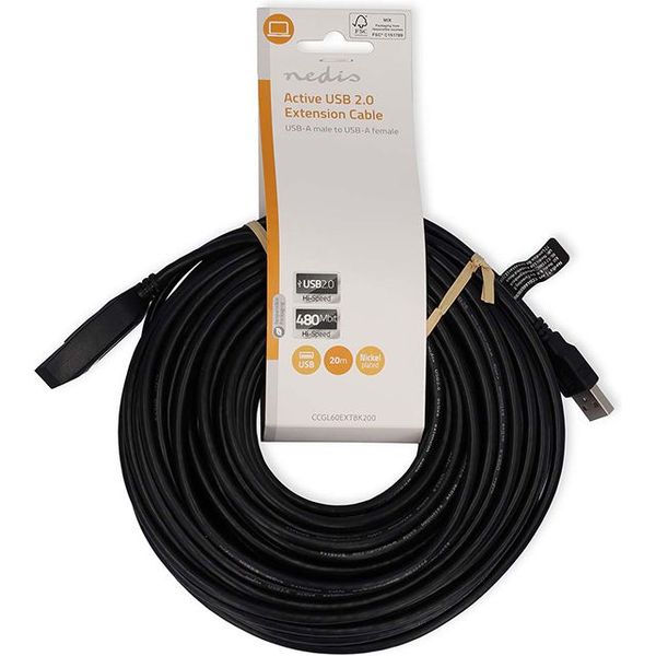 > > > NEDIS CCGL60EXTBK200 ACTIVE USB 2.0 CABLE USB A MALE - USB A FEMALE 20.0MC
