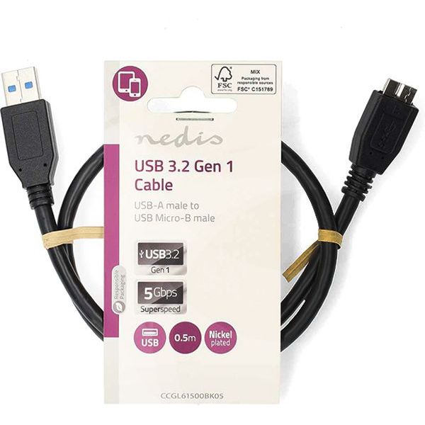 > > > NEDIS CCGL61500BK05 USB 3.2 GEN 1 CABLE USB A MALE - USB MICRO-B MALE 5GBPS 0.50M BLACK