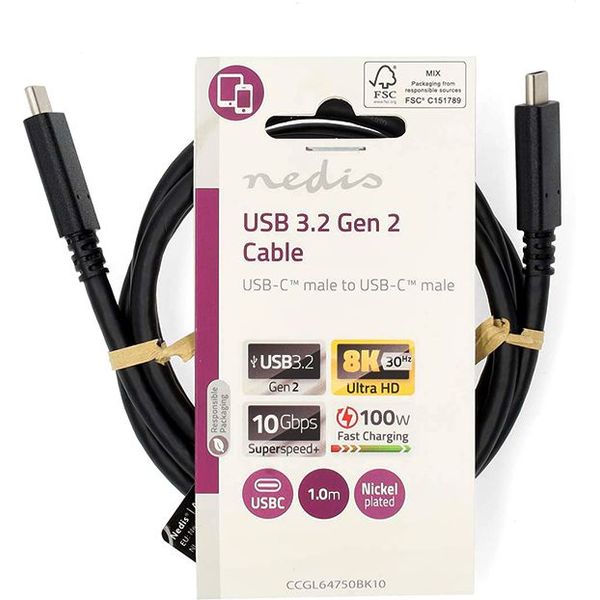 > > > NEDIS CCGL64750BK10 USB 3.2 GEN 2X1 CABLE USB-C MALE - USB-C MALE 10 GBPS 1.00M BLACK