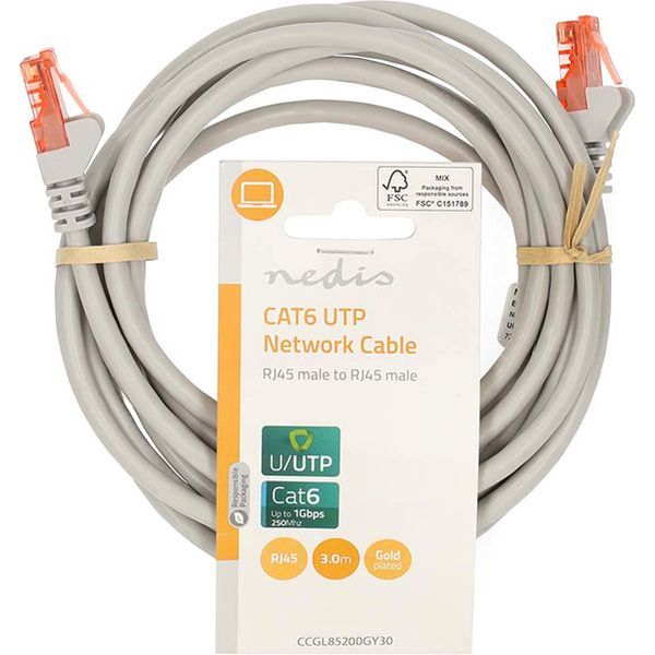 NEDIS CCGL85200GY30 CAT6 NETWORK CABLE RJ45 MALE - RJ45 MALE U/UTP 3.00M GREY