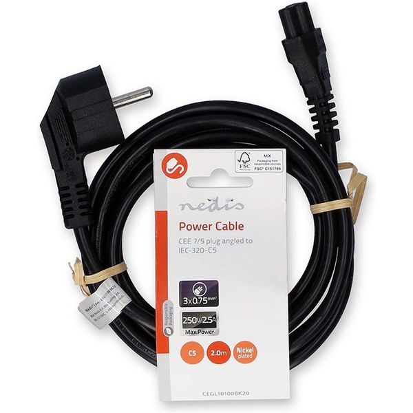 > > > NEDIS CEGL10100BK20 POWER CABLE ANGLED SCHUKO MALE - IEC-320-C5 2.00M BLACK