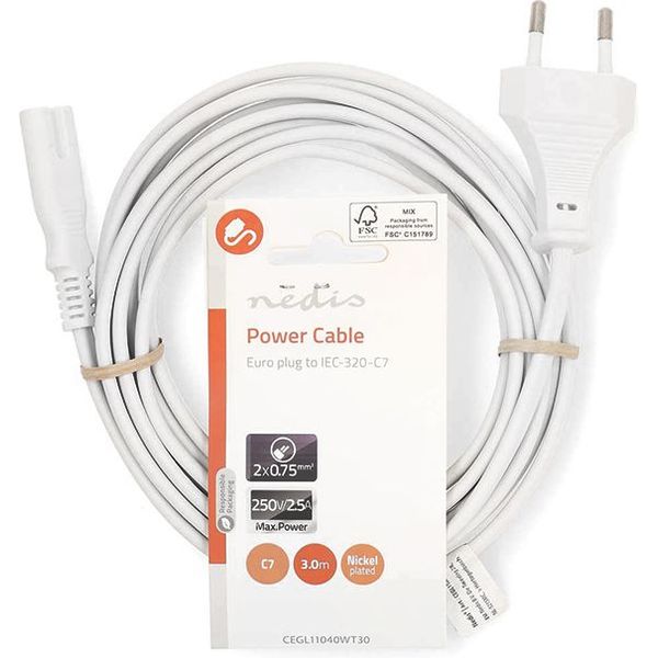> > > NEDIS CEGL11040WT30 POWER CABLE EURO MALE - IEC-320-C7 3.00M WHITE