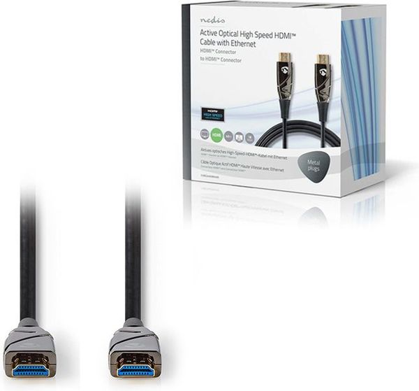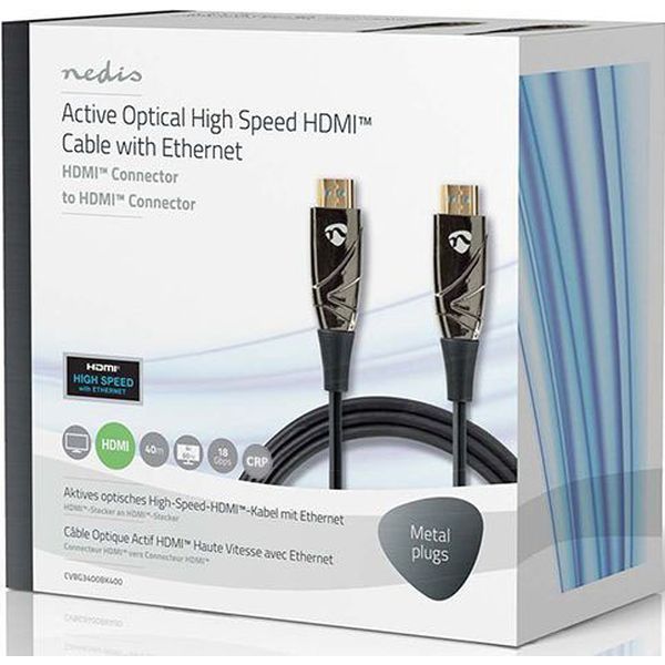 Ενεργό οπτικό καλώδιο High Speed HDMI with Ethernet, HDMI αρσ. - HDMI αρσ. 40m. Ιδανική λύση για αξιόπιστη μετάδοση υψηλής ποιότητας εικόνας και ήχου σε μεγάλες αποστάσεις. Το ενεργό οπτικό καλώδιο (AOC) μετατρέπει τα ηλεκτρικά σήματα σε οπτικά, επιτρέποντας την ασύγκριτη μετάδοση δεδομένων χωρίς απώλειες.