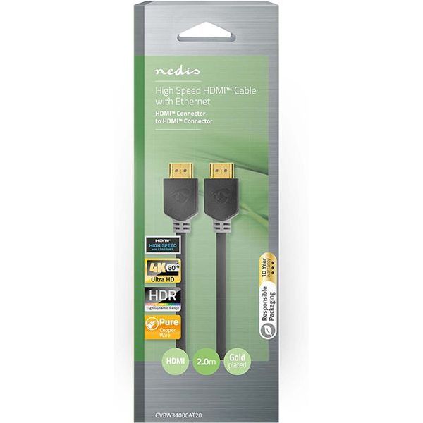 nedis cvbw34000at20 high speed hdmi cable with ethernet hdmi connector hdmi connector 2m anthracite photo