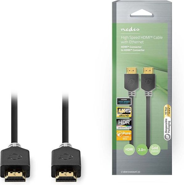 > > > NEDIS CVBW34000AT20 HIGH SPEED HDMI CABLE WITH ETHERNET HDMI CONNECTOR-HDMI CONNECTOR 2M ANTHRACITE