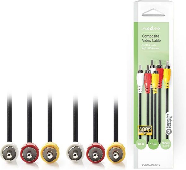> > > NEDIS CVGB24300BK15 COMPOSITE VIDEO CABLE 3X RCA MALE - 3X RCA MALE 1.5 M BLACK