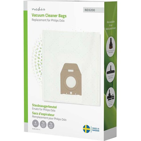 NEDIS DUBG1200-4.1 PHILLIPS OSLO+ VACUUM CLEANER BAG 4PCS SYNTHETIC WHITE (HAP.179805)