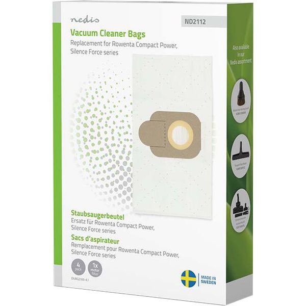 NEDIS DUBG2100-4.1 ROWENTA COMPACT POWER SERIES/ROWENTA SILENCE FORCE VACUUM CLEANER BAG 4PCS