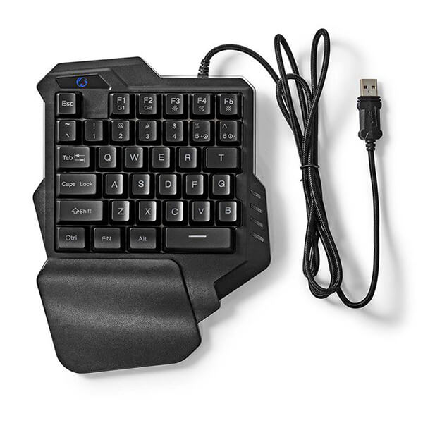 Ενσύρματο One-hand Gaming keypad με RGB φωτισμό και 35 πλήκτρα. Το one hand gaming keypad Nedis σας δίνει τον πλήρη έλεγχο. Η εργονομική στήριξη καρπού παρέχει άνετη χρήση ακόμη και για αρκετές ώρες παιχνιδιού. Με 35 πλήκτρα αυτό το keypad μπορεί να ικανοποιήσει όλες τις gaming απαιτήσεις σας, ενώ διαθέτει ρυθμιζόμενο RGB οπίσθιο φωτισμό.