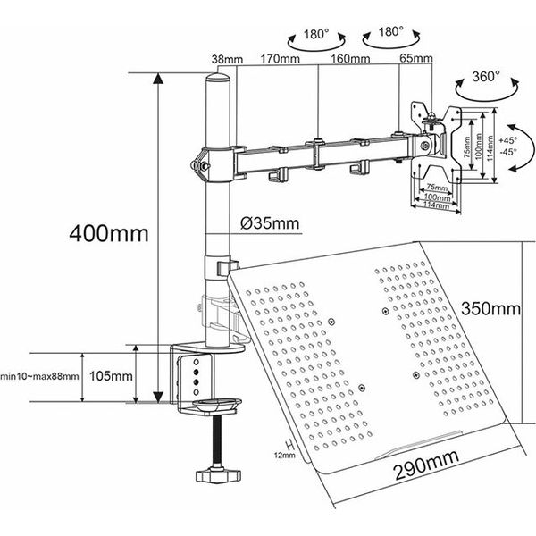 > > > NEDIS MMSISNB110BK DESK MONITOR MOUNT FOR NOTEBOOK & 1 SCREEN 15 - 32 75X75 / 100X100