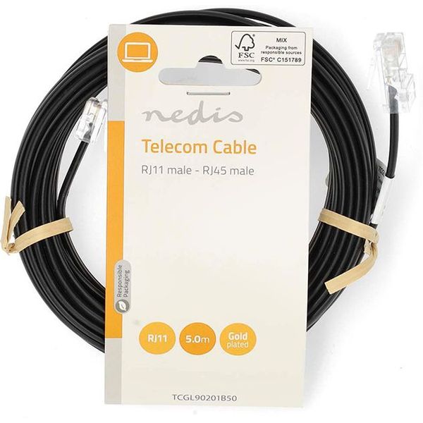 > > > NEDIS TCGL90201B50 TELECOM EXTENSION CABLE RJ11 MALE - RJ45 MALE 5.00M BLACKPN